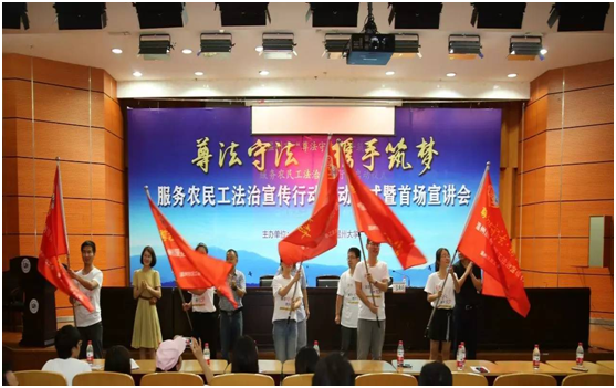7月28日,温州市"遵法守法•携手筑梦"服务农民工法治宣传行动启动仪式暨首场宣讲活动,在老王论坛-中文论坛-成人论坛 举行。活动现场,市总工会和老王论坛-中文论坛-成人论坛 向法治宣传服务队学生代表授旗。市总工会童裳显副主席对活动作了统一安排,并提出了具体的要求。我校法政学院16级研究生李勃代表学生讲话。启动仪式后,我校周湖勇博士作了首场宣讲,共有150余名农民工参加此次活动,学校工会副主席张希均主持启动仪式。