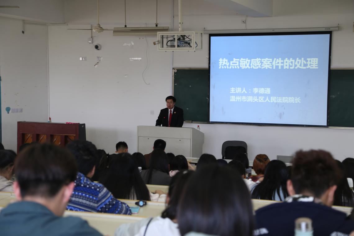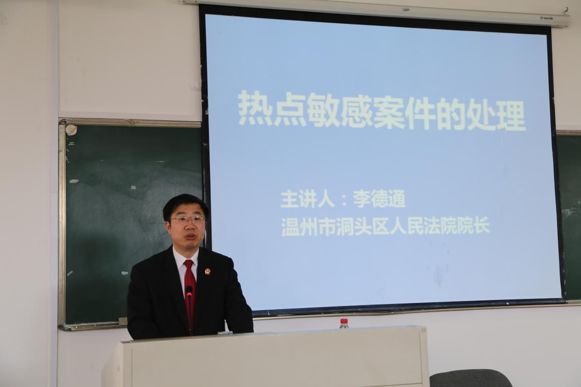 当天,李德通院长与出席讲座的师生还进行了热烈的现场互动,增进了法学学生对法院工作的认识和了解,得到了师生的充分肯定。讲座后,同学们纷纷表示,李院长的讲座具有强烈的理论性与实务性,受益良多。讲座由周湖勇老师主持。