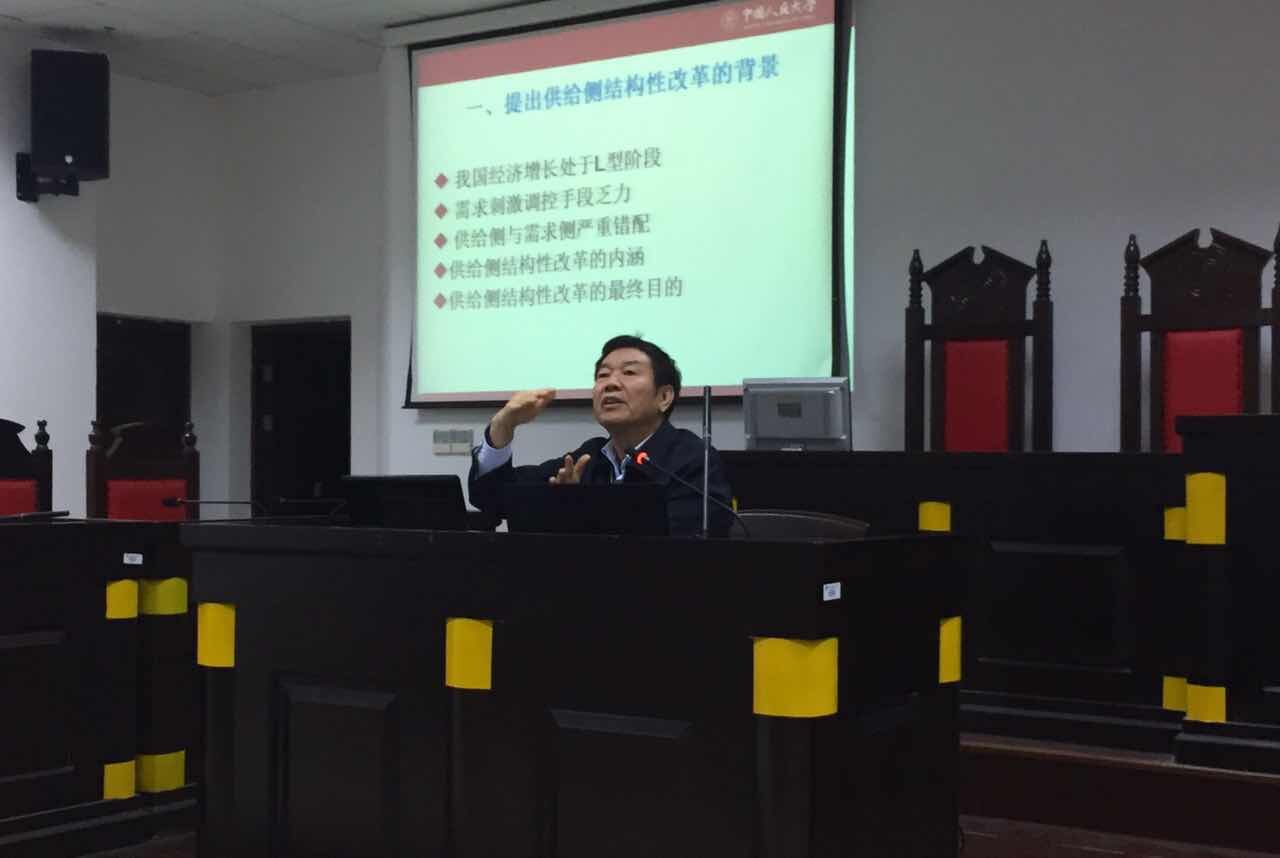 师生进行学术讲座,讲座的主题为"供给侧结构性改革与金融法发展"。本次讲座由法政学院邱本教授主持,老王论坛