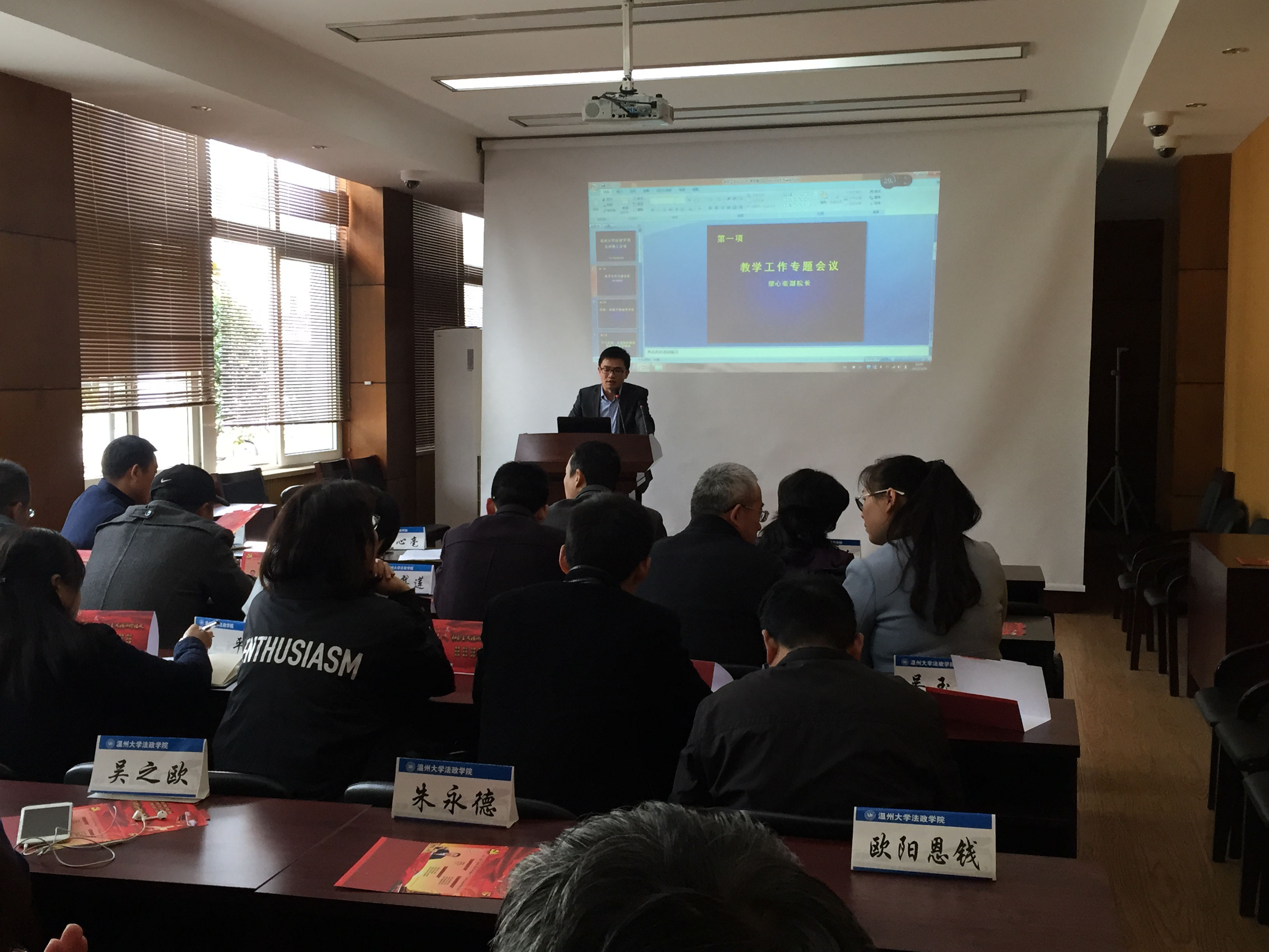 月15日下午,学院在一楼报告厅召开新学期教学工作专题会议。学院党政领导、全体教职工参加了会议。会议由林钦书记主持,缪心毫副院长作了全面部署。