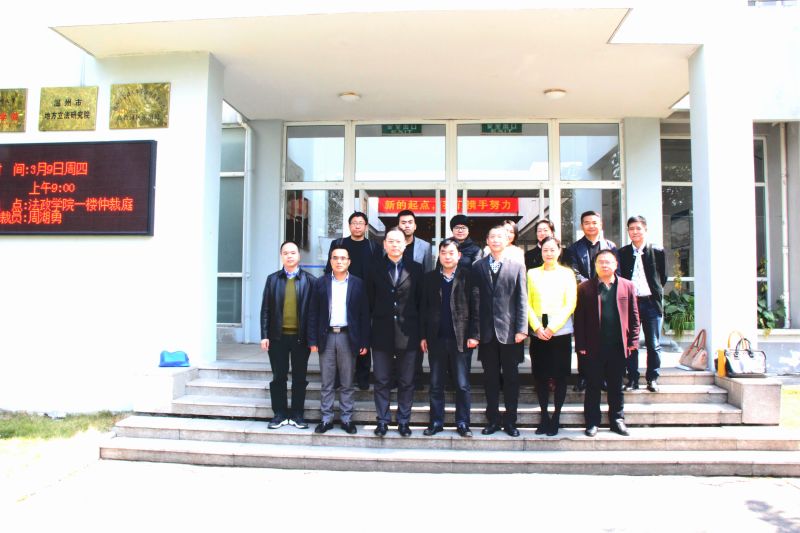 人文社科处副处长陈宝胜、人事处副处长蒋俊、法政学院党总支书书记林钦等领导及相关人员陪同。法政学教师、派出庭庭长周湖勇博士向吴院长一行作了专题汇报,吴正院长充分肯定了区仲裁委派出庭建设所取得的成效,高度评价其为全省最好派出庭,并对下一步工作提出具体要求。他强调,一要注重品牌培育,打造全省乃至全国一流派出庭;二要进一步提升争议案件处理实效;三要坚持公平公正办案原则;四要加强对仲裁队伍的支持力度。