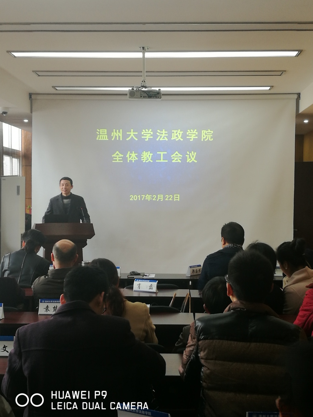 新学期新气象,法政学院2016年取得了一系列成绩,是全体教工共同努力的结果,在已有的扎实基础上将在2017年同心协力,再创新成绩。
