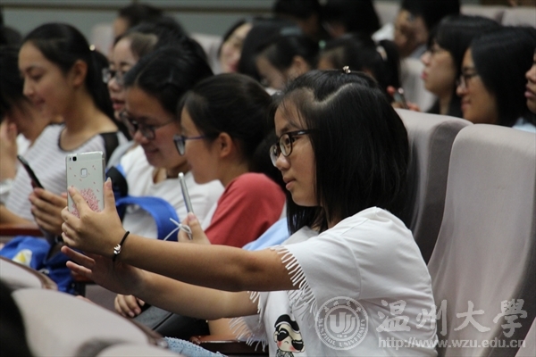 在"感恩·启航"环节,每一位新生都手机自拍典礼现场并给家长亲朋发一条图文微信,表达对家长和亲朋对自己10几年学业生涯的陪伴、支持和感恩,以及自己对大学四年的畅想。新生入学典礼暨师生见面会的"视图法政"环节,学生科老师精心准备,通过"视图法政"系列视频向全体新生直观生动的介绍了特色班级评选、侨界留守儿童关爱项目、七彩虹环保社团、律政学子论坛等学院文化品牌,特别播放了80周年校庆期间学院举办的"携手校友·共话职涯"律政学子论坛大学生职业生涯规划专场视频精选片段,为刚入学的大一新生及早进行职业生涯规划导航。