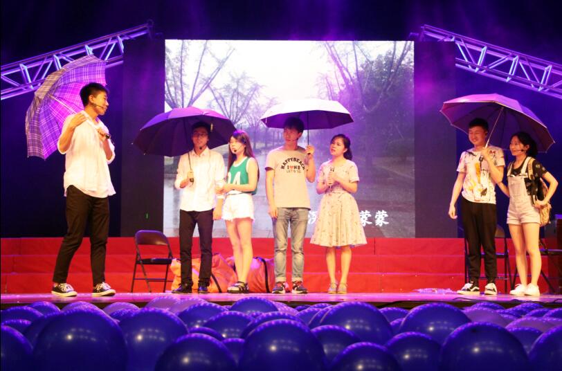 王杰、尹钰担任。法政学院领导、师生齐聚一堂,用一幕幕饱含深情的演出,诉说着心中难以掩藏的情愫。老师、同学陆续到达后,大屏幕上开始播放视频,屏幕上出现的是曾经不以为意、现在却看到落泪的一幕又一幕,勾起大四学子们对青春的回忆。活力动感的开场舞《给力青春》结束后,主持人宣布晚会正式开始。
