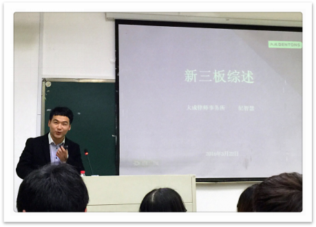 2016年3月22日星期二晚上六点半,大成律师事务所的纪智慧律师为我们带来了一场精彩且具体的非诉律师的职业板块的讲座。