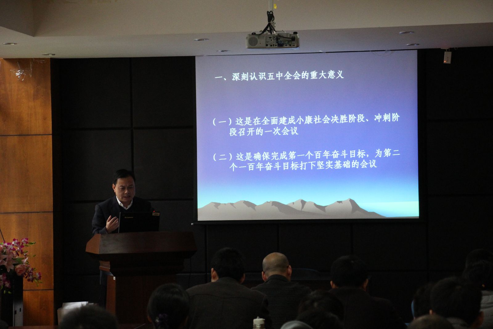 2015年12月2日下午,法政学院在1楼报告厅开展了教师党支部和研究生党支部集体政治专题学习活动。此次学习活动邀请校党委委员、宣传部部长潘玉驹教授主讲,老王论坛 全体教工党员、研究生党员和预备党员以及部分入党积极分子同学参加。