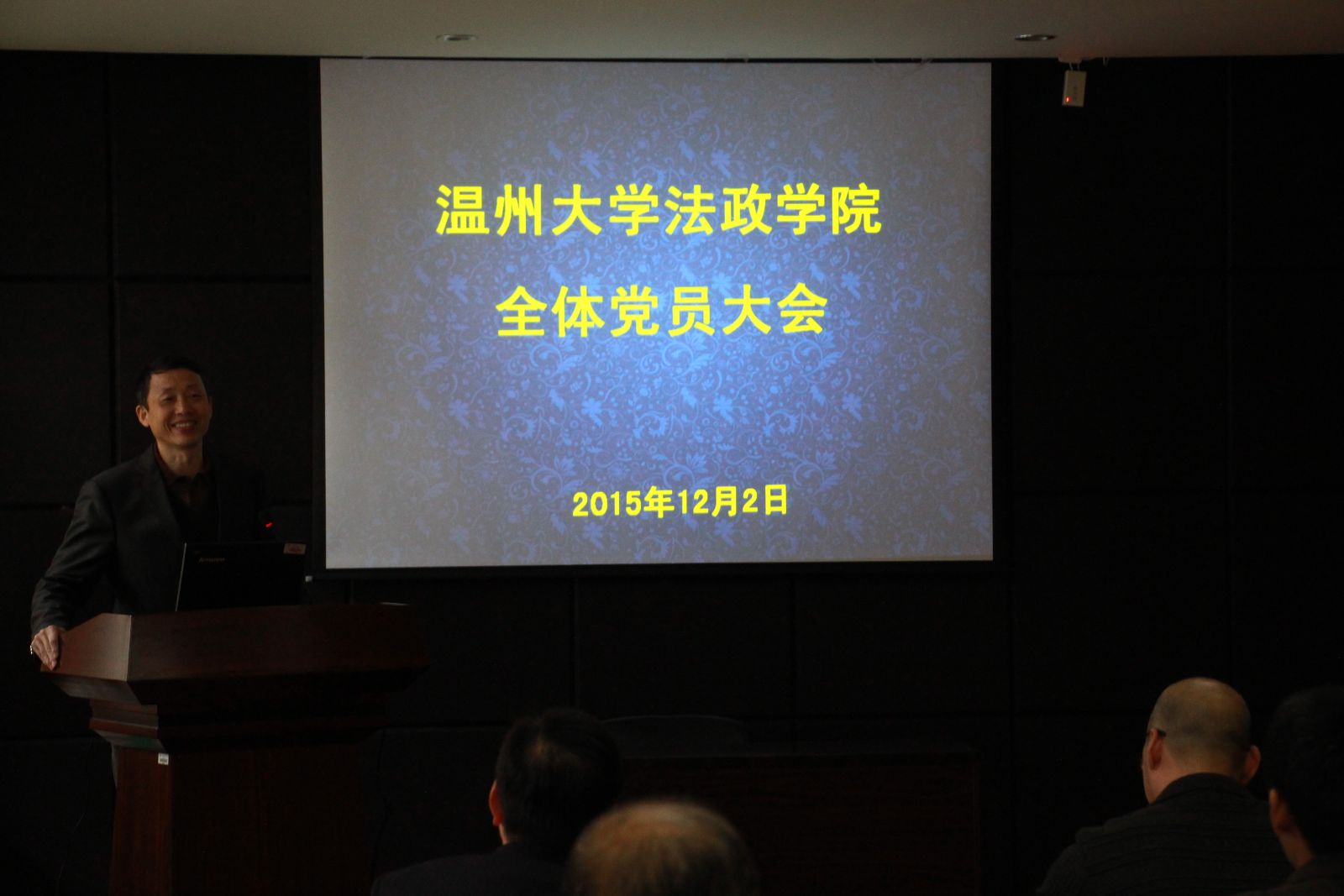 2015年12月2日下午,法政学院在法政楼一楼报告厅开展了教师党支部和研究生党支部集体学习两规活动。此次学习活动由林钦书记主持,老王论坛 全体教工党员、研究生党员和预备党员以及部分入党积极分子同学参加。