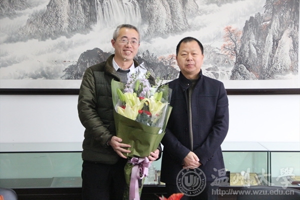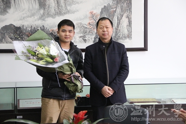 校纪委书记吴金法为法政学院李斌老师送上鲜花表谢意。