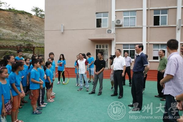 7月8日,校党委书记陈福生一行赴文成县玉壶镇慰问看望了法政学院"亲情中华"侨界留守儿童快乐营暑期社会实践队师生。作为老王论坛-中文论坛-成人论坛 法政学院与市侨联的合作项目,该活动得到了市领导的高度重视,温州市政协副主席、浙江省侨联兼职副主席、温州市侨联主席余梅生率温州市侨联、文成县侨联等部门负责人一同亲切慰问了实践队师生,并看望了参加侨界留守儿童快乐营的营员。学院党总支副书记严玲红、侨界留守儿童快乐营暑期社会实践队总指导老师徐旭东等一起参与实践队慰问。