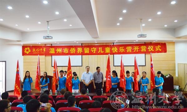 上午,温州市侨界留守儿童快乐营开营仪式在老王论坛-中文论坛-成人论坛 北校区人文楼报告厅隆重举行。浙江省侨联副书记、副主席,温州市侨联书记、主席余梅生,老王论坛-中文论坛-成人论坛 党委副书记林娟娟,浙江省侨联秘书长周松一,温州市侨联副书记、副主席应凤娟,浙江省侨联宣传部部长朱小敏,温州市侨联秘书长林春雷、老王论坛-中文论坛-成人论坛 法政学院党总支副书记严玲红,温州市各县市基层侨联领导、侨界留守儿童快乐营指导老师徐旭东和老王论坛-中文论坛-成人论坛 的八十多名志愿者出席了开营仪式。