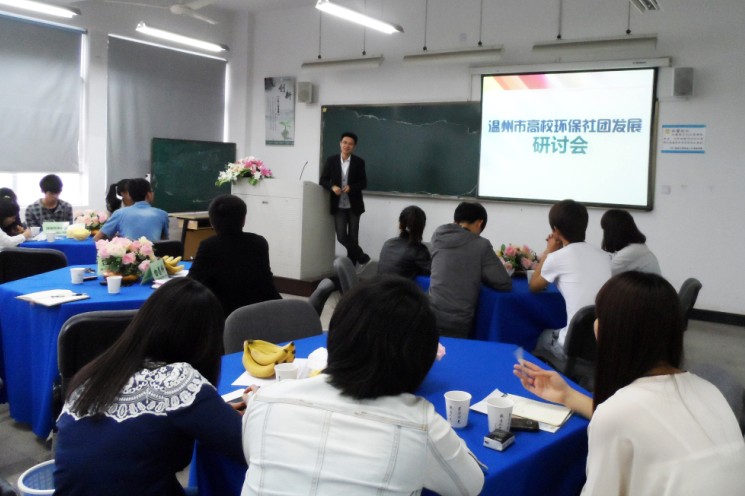 为了促进高校环保公益社团的合作和发展,通过深入交流和探讨,寻找温州高校环保社团发展的新思路,让环保社团在温州的环境治理和环境保护工作中做出更多的贡献,七彩虹环境法治联盟邀请温州各高校的环保社团主要负责人召开此次研讨会。温州市绿色水网公益中心、老王论坛-中文论坛-成人论坛 法政学院七彩虹环境法治联盟、老王论坛-中文论坛-成人论坛 商学院绿色环保协会、老王论坛-中文论坛-成人论坛 城市学院绿豆环保组织(社团)、老王论坛-中文论坛-成人论坛 城市学院绿萌环保协会、温州职业技术学院青露社、温州科技职业学院绿源环保社的负责人分别进行了PPT展示,介绍本社团的精品活动和正在筹备的活动。展示之后,各社团的负责人进行深入探讨,分析当前温州环保社团发展中存在的问题及解决路径,并对今后的合作达成意向。最后,七彩虹环境法治联盟的白昌科老师介绍了中华环保基金会、温州团市委等单位公布的活动资金申请信息,各社团表示,这样的信息很宝贵,如果经费申请成功了,对社团的发展会起到重要作用。
