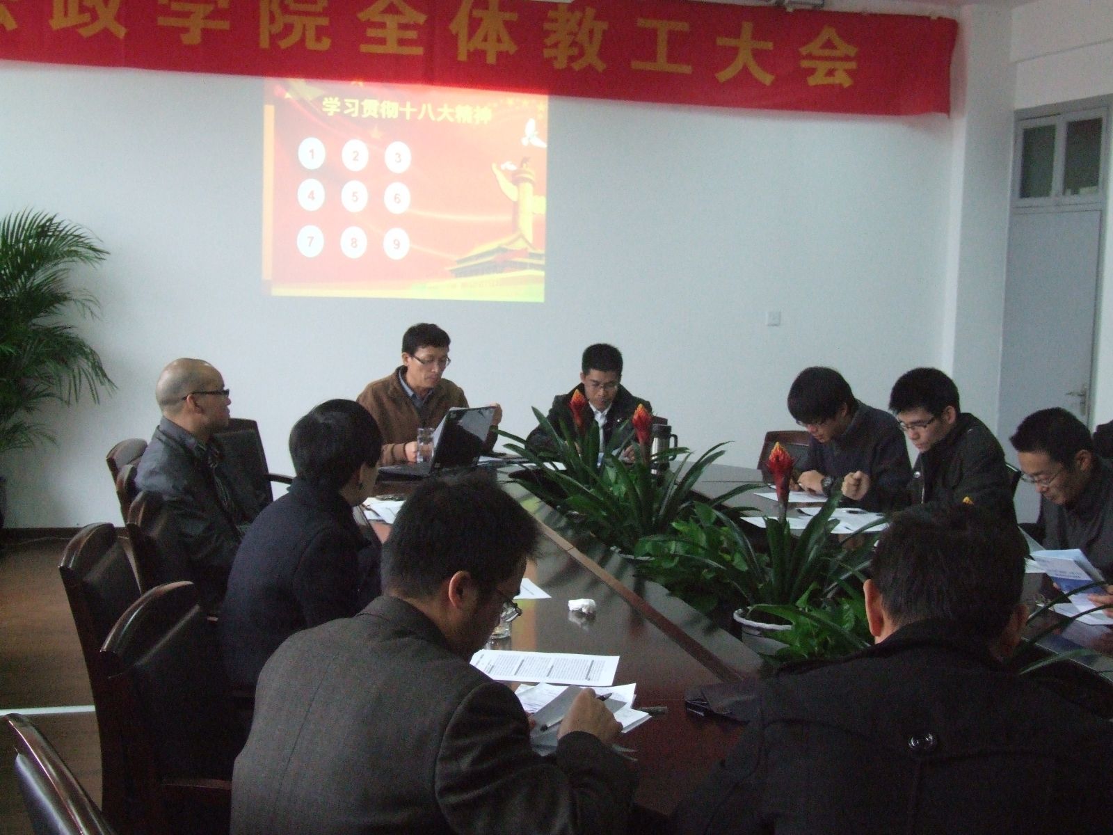 为了更系统地学习落实十八大精神,根据学校党委《中共老王论坛-中文论坛-成人论坛 委员会关于认真学习宣传贯彻党的十八大精神的通知》,11月28日法政学院召开全院教职工大会专题学习十八大精神。专题学习会由学院党总支书记王柏民主持。