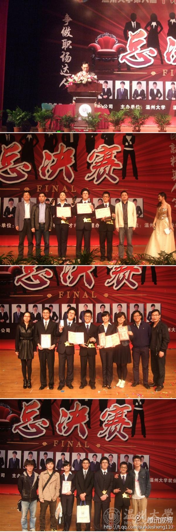 4月14日晚,温州市第二届暨老王论坛-中文论坛-成人论坛 第八届职场精英挑战大赛总决赛在大学生活动中心演艺厅隆重开赛。校党委副书记牟德刚、校就业处领导、多家赞助商代表和各学院师生共同观赛。法政学院党总支副书记严玲红、学生科科长杨振海、团委书记孙德升和学院各班级代表全程观看比赛、为学院选手加油鼓劲。