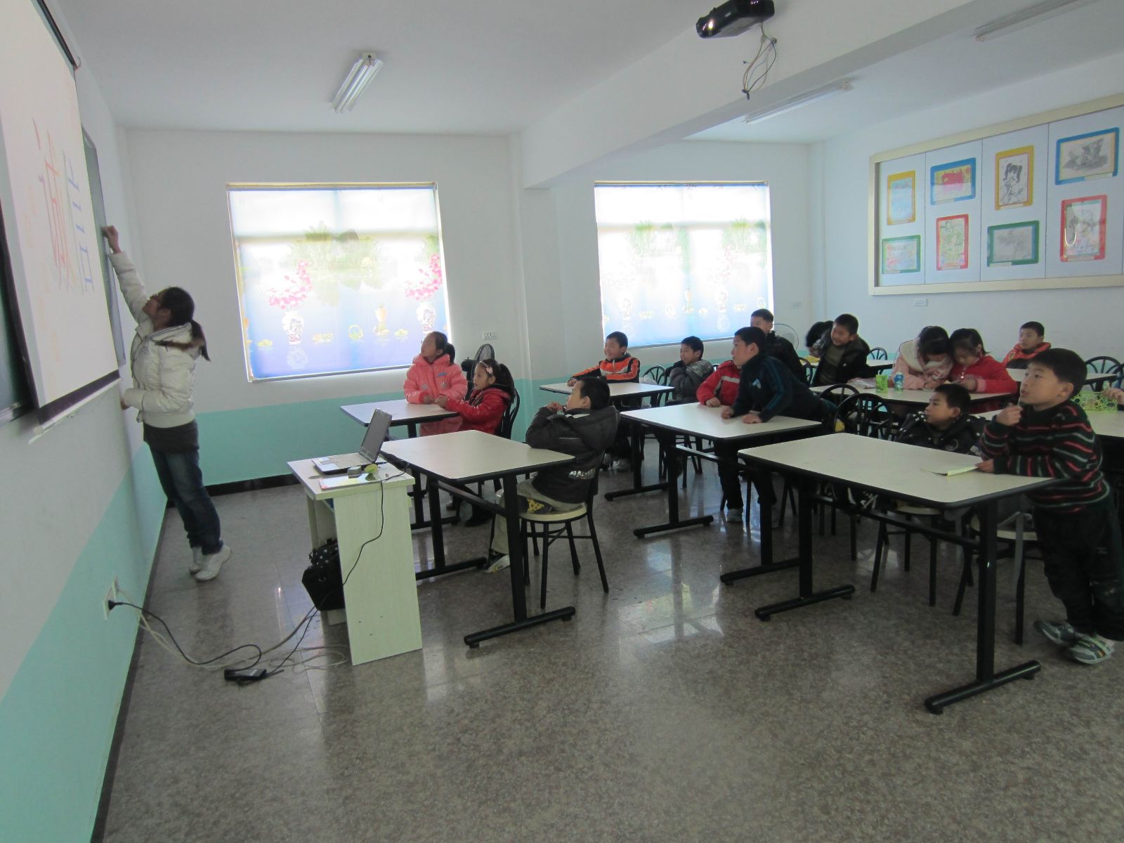 在七都镇侨联负责人的指导下,同学们给孩子们上了一堂书法指导课;何莹同学为孩子们讲解了有关诚信的主题教育课,她通过一系列精彩的故事让孩子们懂得了诚信的重要性。同学们又组织孩子们一起写新年愿望,并表示将和当地侨联一起努力来帮助孩子们实现新年愿望。