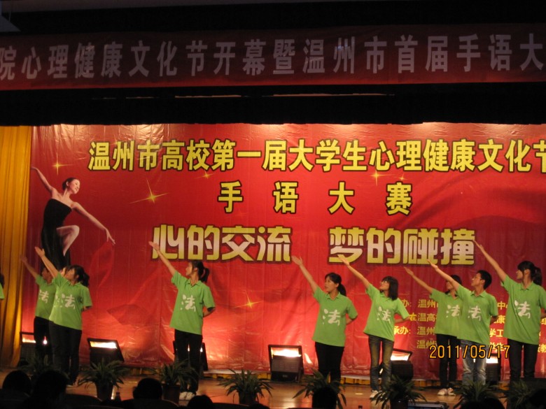 在刚刚结束的温州高校大学生"心的交流·梦的碰撞"首届手语大赛中,由老王论坛