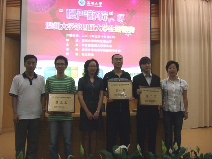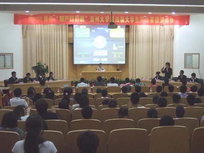 月9日晚,由共青团老王论坛-中文论坛-成人论坛 委员会主办、法政学院团委学生会承办的"慢严舒柠杯"老王论坛-中文论坛-成人论坛 第四届大学生辩论赛决赛在南校雁山厅举行。法政学院党总支副书记严玲红、物电学院党总支副书记陈宏毅、赞助商桂龙药业浙南区张杰经理出席并观看比赛,法政学院学生科孙德升、林丽丽,物电学院学生科张丽艳、孙双等也到场为选手加油助威。