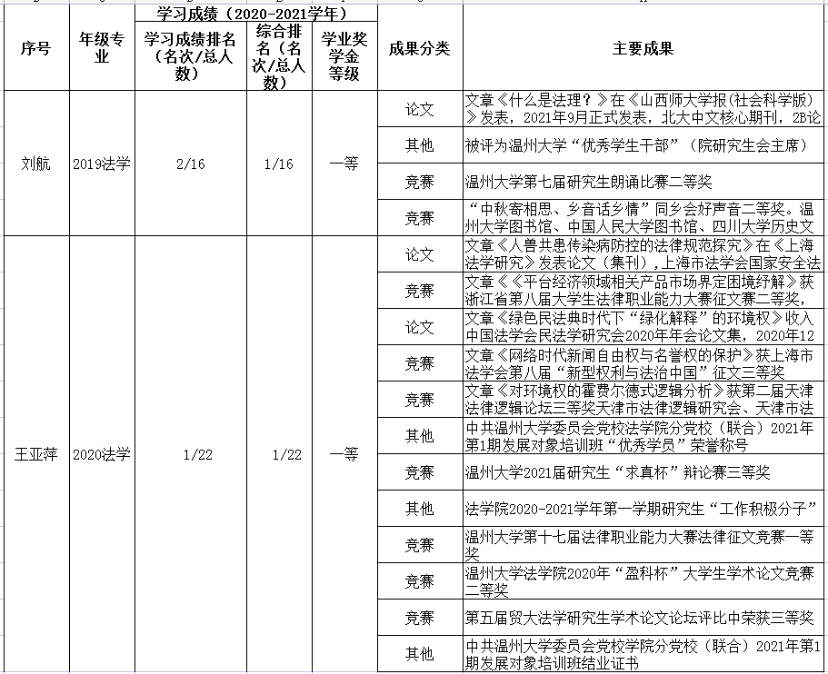 为激发广大研究生勤奋学习、潜心科研、勇于创新、追求卓越,充分发挥研究生国家奖学金的激励导向作用,根据省教育厅、财政厅有关文件及《老王论坛-中文论坛-成人论坛 研究生国家奖学金管理办法》(行政〔2013〕159号)等文件精神,学院开展2021年度研究生国家奖学金评选。经学院通知、学生报名、资格审核、学院评审等环节,现对学院评审结果进行公示。