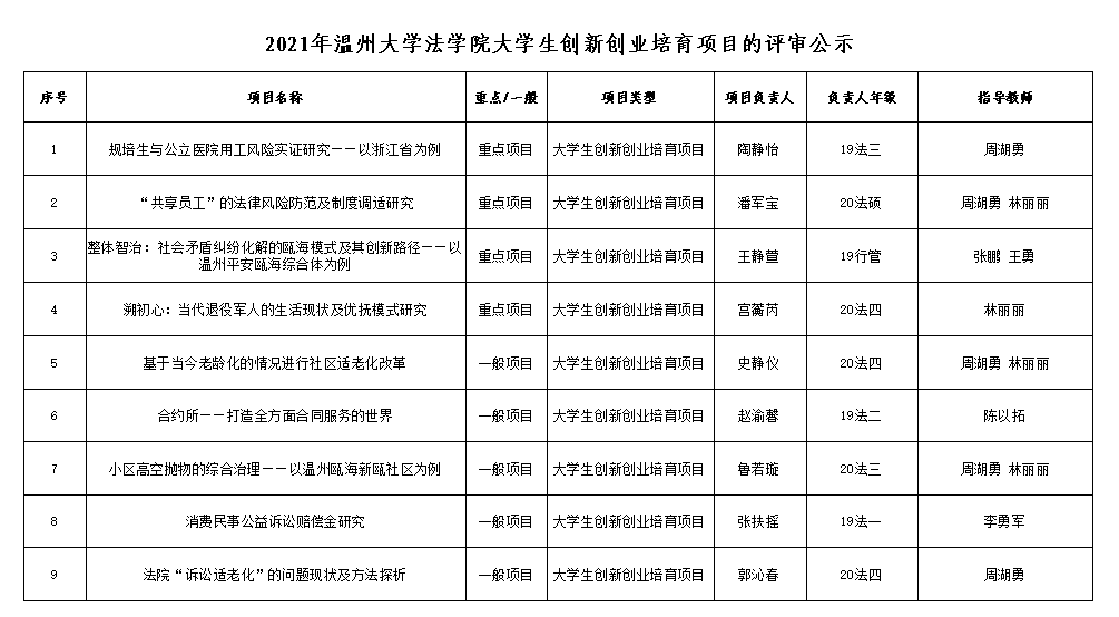 根据《老王论坛-吃瓜论坛-maya论坛 关于开展2021年度大学生创新创业培育项目立项申报的通知》要求,经学生本人申请,学院专家评审评定,共评选出重点项目4项,一般项目5项,现将立项结果予以公示。
